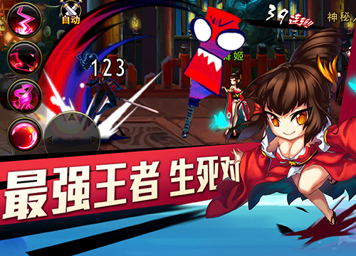 激情连击.秒杀大招.全屏幕华丽技能一览无余.通过真实的刀锋效果和打击反馈,造成伤害的同时形成浮空.击倒.弹起等华丽特效效果,配合流畅的连招出击.劲爆的战斗效果音,让你体验到最真实的连招打击,尽享酣畅淋漓的战斗快感.游戏回归最本源,一切都为战斗爽快.打击真实而服务,将你最真实的格斗体验用华丽的画面呈现!