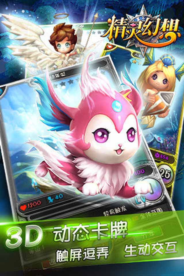 《精灵幻想》是一款3D精灵冒险卡牌手游。穿越欧式萌风奇幻世界,华丽冒险等你出发。Unity3D引擎打造,指尖互动萌态尽显,告别生硬卡牌。三阵营五职业百款精灵自由收集,打造独一无二的精灵战队。3D粒子超炫魔法战技,360度自由切换。首创精灵共鸣系统,阵营相生相克。
