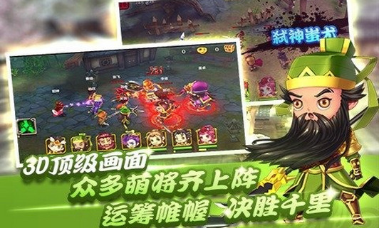 游戏以养成为主,收集为辅,提供众多养成方式供您选择,武将获取途径更多更容易。独特武将轮回变身,一骑当千英雄模式,策略布阵、即时战斗换位,清新Q版画风,真3D视角展示,带您畅游不一样的三国历史。