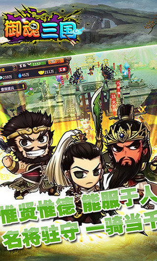 烽火诸侯起,战乱枭雄出。经典巨制三国题材动作手游《御魂三国》强势来袭 ,将带给你完全不一样的三国世界,这是一款集合了SLG+RPG+ACT为一体的Q版手游,全球首款结合了休闲、动作闯关、城池争霸等多元新品类玩法游戏!动作爽快流畅,技能连招绚丽,全3D视觉效果;特色将魂召唤,让你变成你心中的三国英雄;兵种牵制,搭配让你过足智囊瘾!统率麾下武将攻城略地,割据一方做乱世霸主!