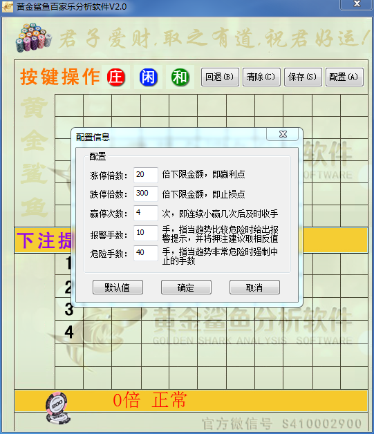 金鲨PC手动版分析软件,专业针对各种公平性强的网络波菜娱乐平台开发。根据多种百家樂技术算法,结合单路类比以及科学原理等多元化分析编写而成。