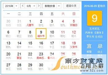 【2016年放假安排时间表图】2016年6月9日至6月11日放假公休,共3天