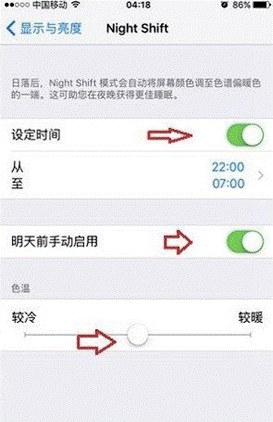 点击设置—显示与亮度——Night Shift开启即可。不过需要特别提醒的是,NightShift仅支持64位以上处理器设备,也就是说iPhone5S及其以上设备才可以使用此功能。