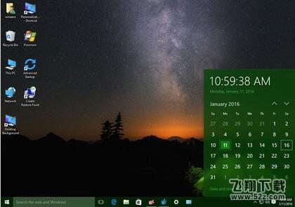 Win10对界面进行了大改,很多Win7、Win8中的元素都进行了重新设计。比如说点击任务栏右下角的时间,就会弹出日历与时间面板,Windows 10里边它是这样的: