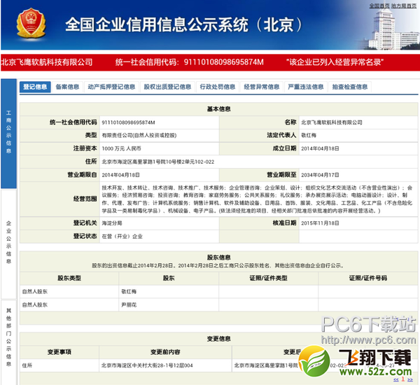 记者还查询了全国企业信用信息公示系统,这个名为北京飞鹰软航科技有限公司的企业早在2015年7月就被北京市工商行政管理局列入经营异常名单