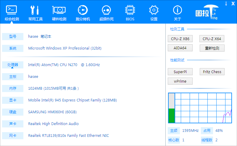 检测用户大致系统配置,然后打包了软硬件一系列图钉们常用的工具,例如cpu-z/gpu-z/gpuinfo/屏幕取色/图吧wifi等。