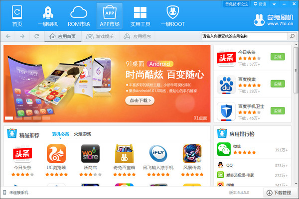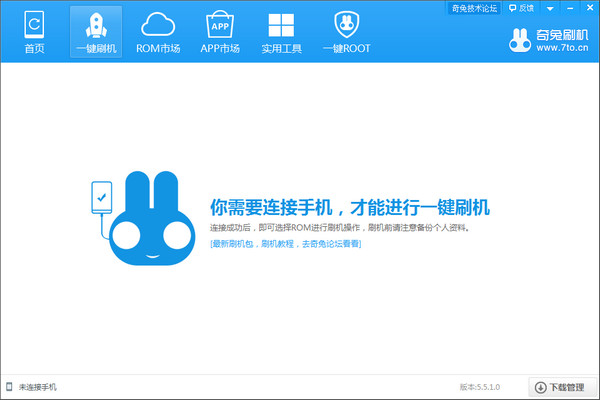 奇兔刷机是一款安卓手机刷机工具,实现真正一键式操作体验,指导用户快速完成刷机