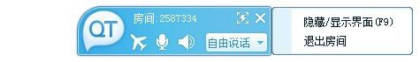 如果你需要退出当前语音房间,请点击“X”按钮,点选“退出房间”。此时您会从当前语音房间退出,QT会缩小到系统托盘菜单,需要的时候可以再次打开QT。