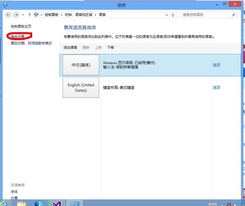 4.语言包安装完毕之后,到控制面板 - “时钟、语言和区域”中选择“添加语言(Add languages)”,找到刚刚安装的语言包(简体中文)