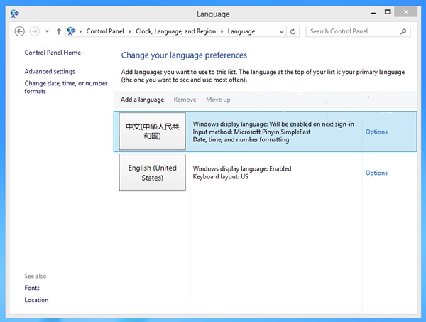 Win8 RTM版中语言包的安装过程: