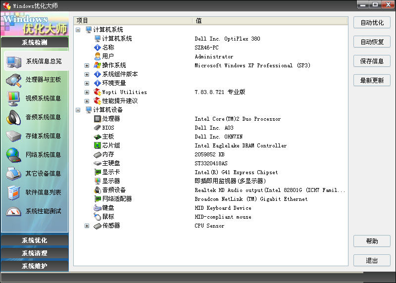 Windows优化大师专业版下载_Windows优化大师专业版特别绿色版V7.87Build8.1121MyCrack下载图片(1/3)