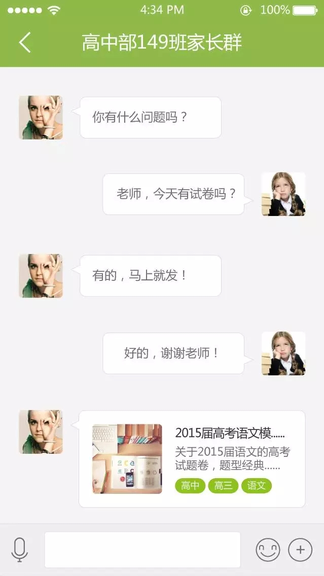 通过备课神器,老师可以推送教学资源给家长,也可以即时沟通。