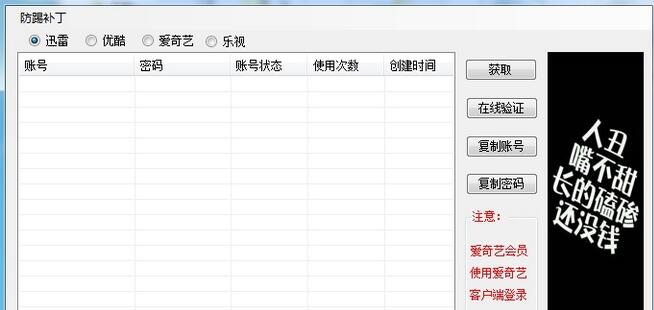 多平台会员账号获取器可以一键获取影视平台的账号,让你轻松,免费的观看付费视频