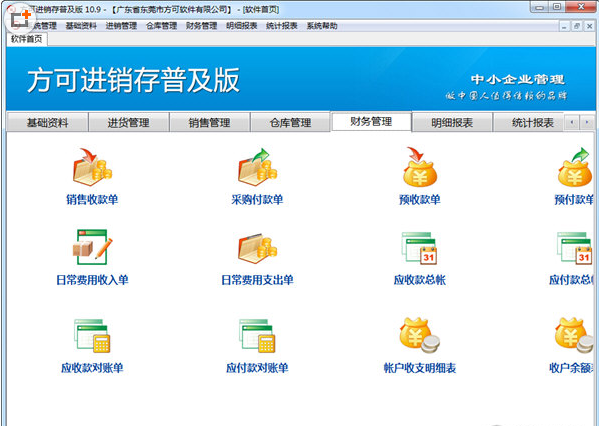 方可进销存普及版是一款功能强大的商业贸易进销存企业管理软件,集采购管理、销售管理、仓库管理、财务管理、日常收支管理、银行帐户管理为一体。采用先进的进销存管理理念来设计,操作流程清晰、界面简洁大方、易懂易学、无需专门的培训,无需专业的财务知识也可以轻松管好帐。方可系列软件均采用国内领先的导航式查询界面,完全傻瓜式的操作,只需用鼠标点击即可完成大型复杂的查询工作。是一款成熟、稳定的商业贸易进销存软件。