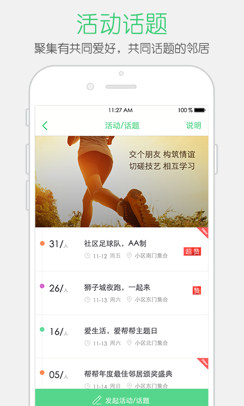 (4)活动话题:聚集有共同爱好,共同话题的邻居。