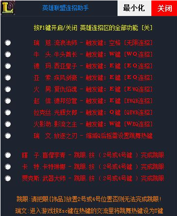 是一款功能强大、专业实用的LOL游戏英雄连招辅助工具