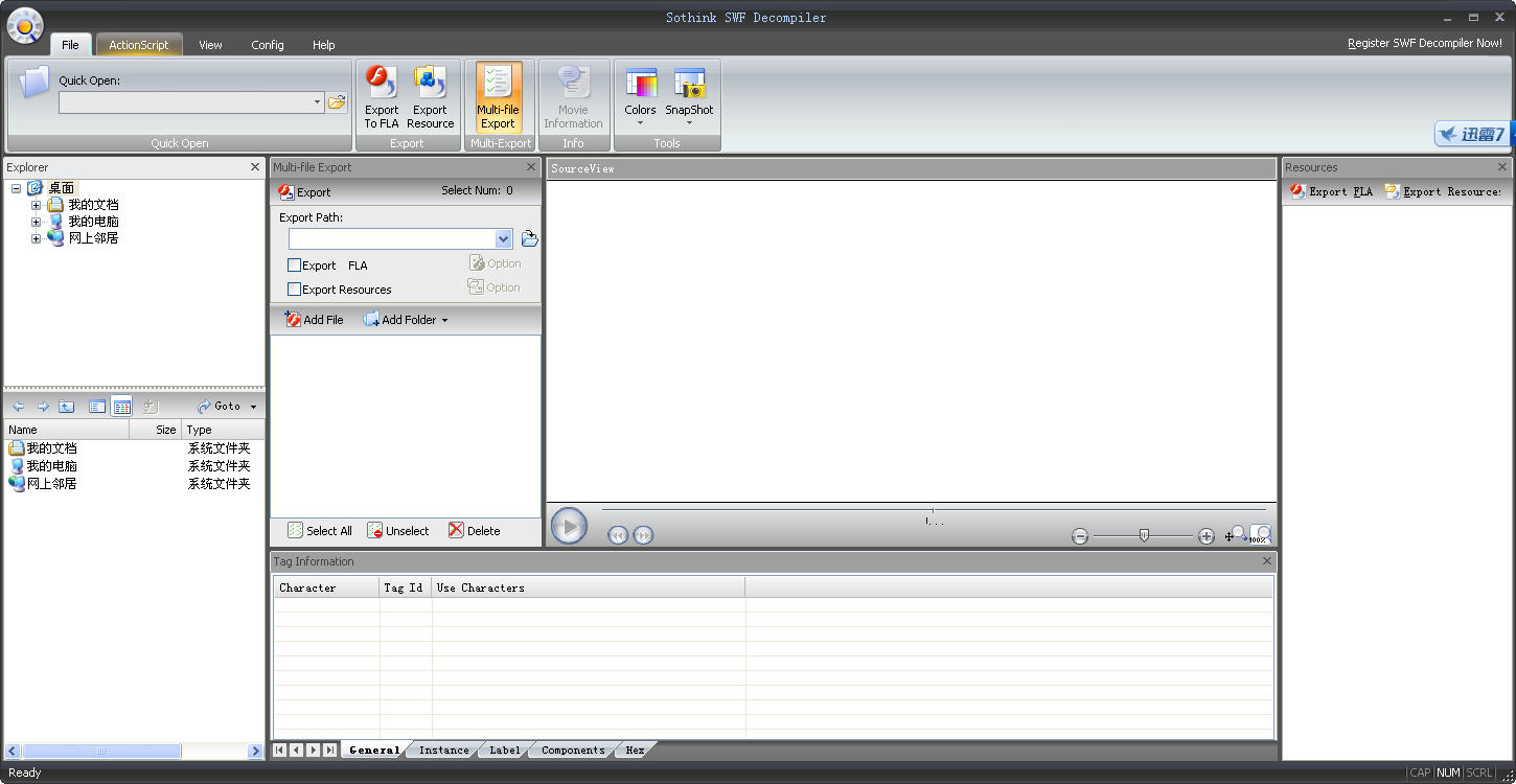 SWF Decompiler MX 它能够将flash动画中的图片、矢量图、字体、文字、按钮、影片片段、帧等基本元素完全分解,还可以对flash影片动作(Action)进行解析,清楚的显示其动作的代码,让您对Flash动画的构造一目了然。你可以将分解出来的图片、矢量图、声音灵活应用于Sothink Glanda中,让你也可以做出大师级的作品