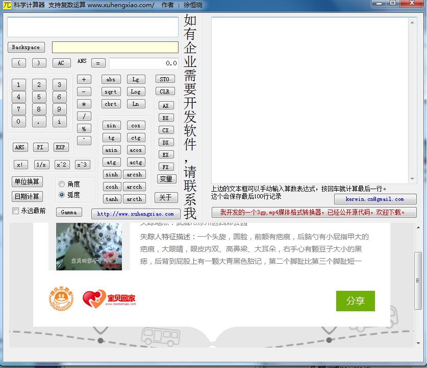 做世界上最好的计算器,如有任何意见或建议,欢迎联系我。本程序支持复数运算。