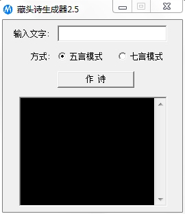 一款非常小巧实用,功能强大、操作简单的藏头诗快速制作工具。用户只需要输入相应的文字,并且选择方式,即可生成相应的藏头诗。
