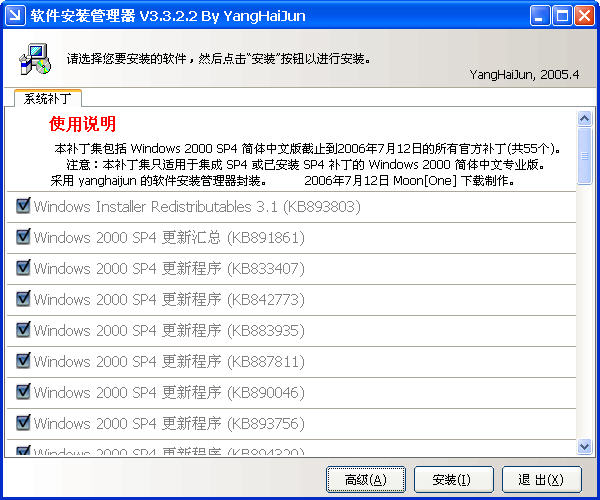 搜集windows 2000 sp4发布以来到2006.04.12 所有补丁,!感谢论坛好友moon_one 制作提供。