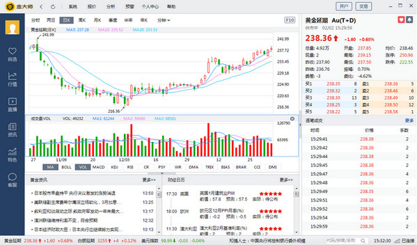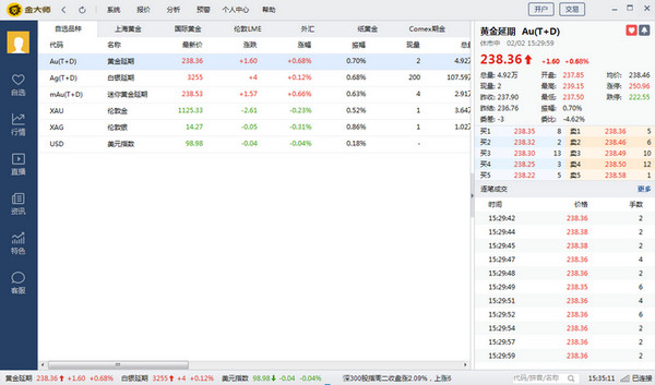 2. 极速行情:利用会员优势,行情直连上海黄金交易所,行情速度全国最快,助您掌握市场先机;