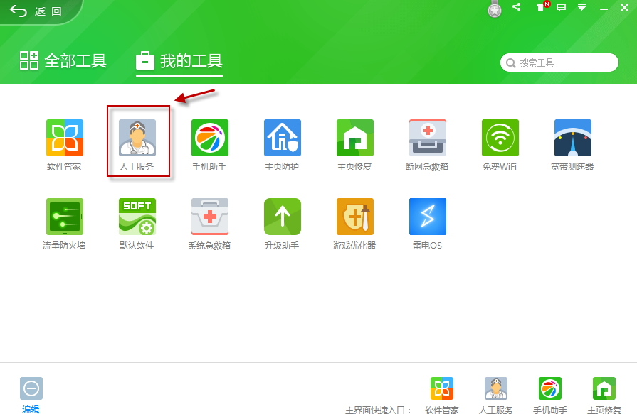 1、首先打开360安全卫士软件,点击人工服务按钮
