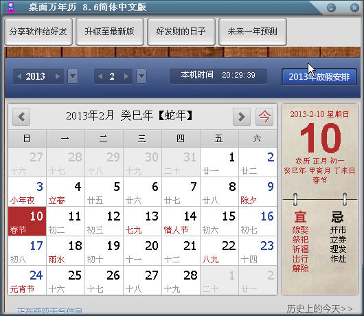 一款日历方面的小工具,,能够显示农历、星期等方面的小工具。软件画面协调,小巧简便,是日历软件中的精品。 支持显示实时节气、日期、节日、阴历、阳历、黄历、标准北京时间等强大功能。哥向您推荐的原因:1、本站呕心沥血的原创,2、绝对绿色,安全无毒,3、哥推荐的都是极品。