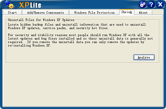 一款功能非常强大的Windows XP和Windows 2000操作系统模块定制工具,程序运行后首先会取消Windows的系统文件保护功能,然后会自动扫描并获取当前操作系统中的软件配置情况,然后允许你任意卸载原本是操作系统中无法卸载删除的模块,比如操作系统原来自动安装的移动向导功能,计划任务功能,Windows SCript Host模块,核心字体模块,帮助和支持中心模块,语音功能模块,ODBC数据库驱动模块,搜索助手模块,Windows教程,驱动缓存模块,还有传真模块,聊天室模块,网络会议和电话拨号模块等等!程序共包含9大类几十种设定功能,通过此程序,你完全可以定制出一个属于自己独特的WindowsXP或者2000,也可以通过优化选择,作出只包含核心模块的最简操作系统,让WindowsXP和2000彻底瘦身。 注:此程序功能非常的强大,大家使用前要记得先保存备份好用户数据,另外运行此程序第一步首先要取消系统文件的保护功能,执行完这一步系统会自动重新启动。