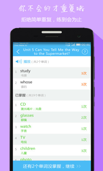 纯正原教材配套音频,单元同步中文意思,让你学到哪儿练习到哪儿掌握到那儿。