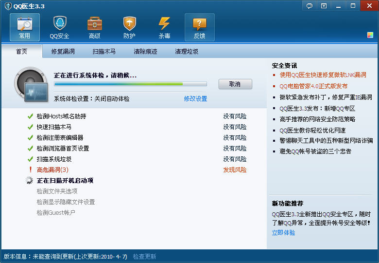 QQ医生是腾讯公司发布的专门针对QQ帐号密码被盗问题所提供的一款盗号木马查杀工具,它将准确扫描并有效清除盗号木马,从而保障QQ帐号的安全。
