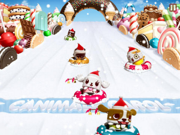 雪橇比赛的罐头宝贝快到终点线的时候点击他们就完成有可爱动物叫声的圣诞歌啦。