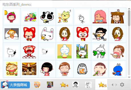 吃东西系列表情包是一款非常适合吃货使用的qq表情包,这里含有多种动物及卡通人物吃各种东西的萌表情
