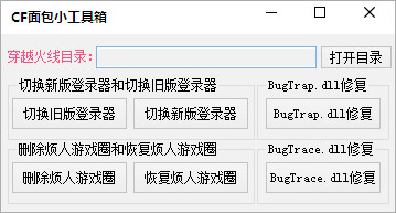 CF面包小工具箱是针对穿越火线游戏推出的一款多功能小工具箱,软件内置登录器切换、游戏圈删除与恢复、bugtrap.dll修复等实用功能。软件功能强大、方便简单,欢迎有使用需求的玩家们下载使用。