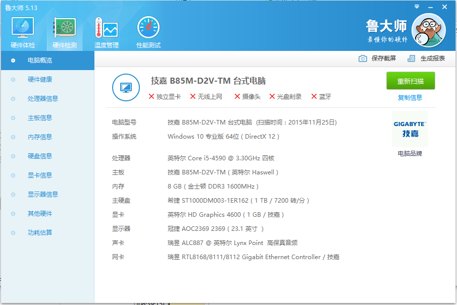 鲁大师拥有硬件检测、硬件测试、系统优化、节能降温。
