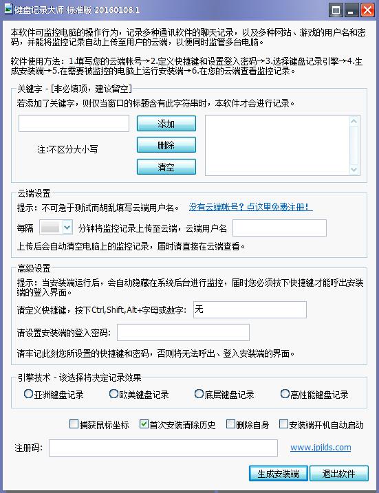 键盘记录大师完美破解版针对官方原版进行了破解优化,内附注册码和云密码,这款软件是一个强大的键盘操作记录工具,你可以使用它来监控和记录所有的操作记录,比如记录多种通讯软件的聊天记录,以及多种网站、游戏的用户名和密码,并能将监控记录自动上传至用户的云端,以便同时监管多台电脑。