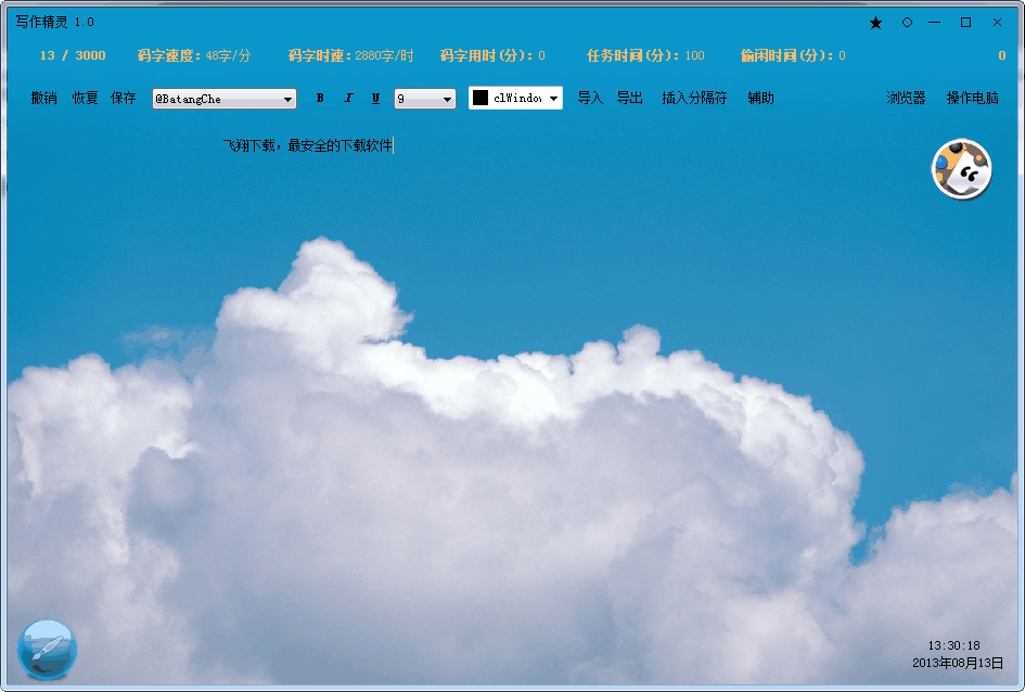 1、具备码字精灵常用功能,如锁定、起名、浏览器、在线音乐等 透明写作背景