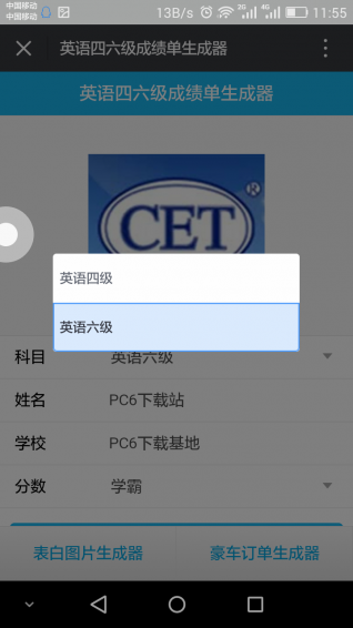 是一款最近微信朋友圈非常火的英语六级成绩单生成软件