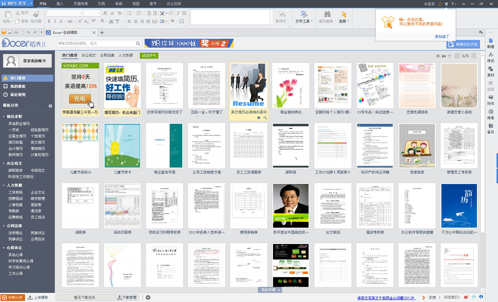 WPS 2015的产品界面和logo都采用了当前最流行的Win8扁平化设计风格,同时对1000多个功能图标进行了重绘,使整体设计风格相匹配。