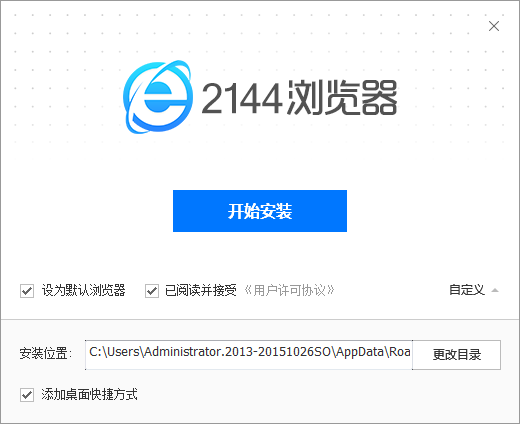 4、安装结束后运行桌面上的快捷方式,或在安装目录找到2144Browser.exe执行。
