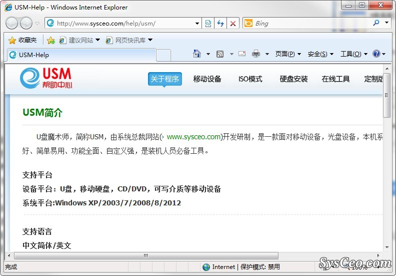 移动设备、ISO模式、硬盘安装、工具大全、帮助中心。