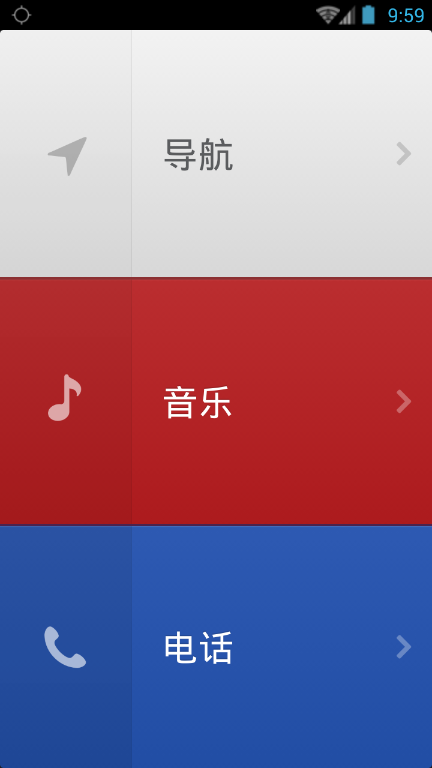 锤子驾驶界面采用极简设计,只有导航、音乐、电话三大模块,简洁明了地展现出了导开车时的必备功能,在驾驶汽车时不但能够更方便地使用手机,也能使出行更加安全。