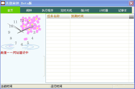 美捷闹钟是一款电脑上使用定时闹钟软件。它不仅可以定时闹钟,还可以定时关机、定时器、倒计时、定时执行指定程序以及还有倒计时、计时器、记事本、日程安排等作用。