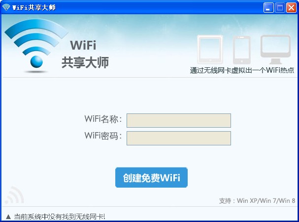 1.目前“WiFi共享大师”仅支持Win 7及带有无线网卡的电脑;