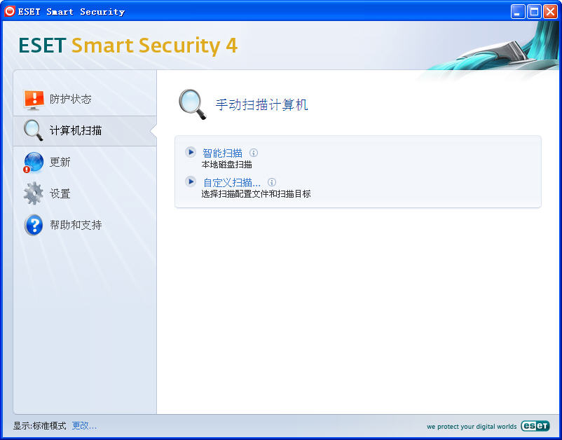 NOD32安全套装 ESET Smart Security 是我一直在用的一个杀毒软件套装,整合了杀毒、实时文件系统防护、网络防火墙、HIPS、网络反钓鱼、Web网页防护、邮件保护、反垃圾邮件、家长控制、游戏模式、反隐藏等多种功能于一身,相比其它杀毒软件,这款软件的查杀病毒的能力很出色,而且系统资源占用方面也不像卡巴斯基那样高,配合可升级的用户ID和密码,病毒库升级也很方便。