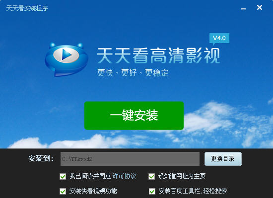 天天看高清影视是一款可在线欣赏视频的客户端软件的客户端软件,让您可以在线享受丰富多彩的直播和点播节目。播放流畅、完全免费,是网民喜爱的装机必备软件