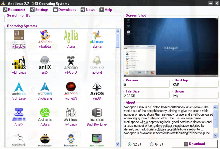 获取Linux是一个方便和可靠的实用程序设计,使您可以下载基于Linux的操作系统。让Linux为您提供了丰富的Linux版本,显示版本号和文件大小。每一个Linux操作系统的32位和64位版本。