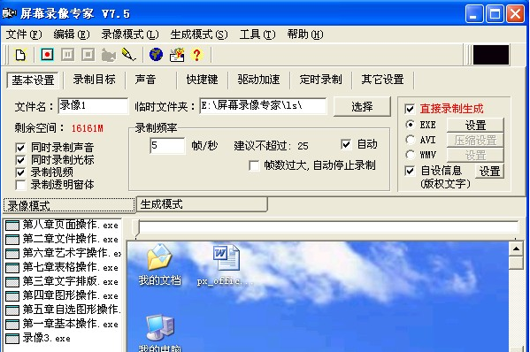 16.支持合成多节EXE录像。录像分段录制好后再合成多节EXE,播放时可以按循序播放,也可以自主播放某一节。