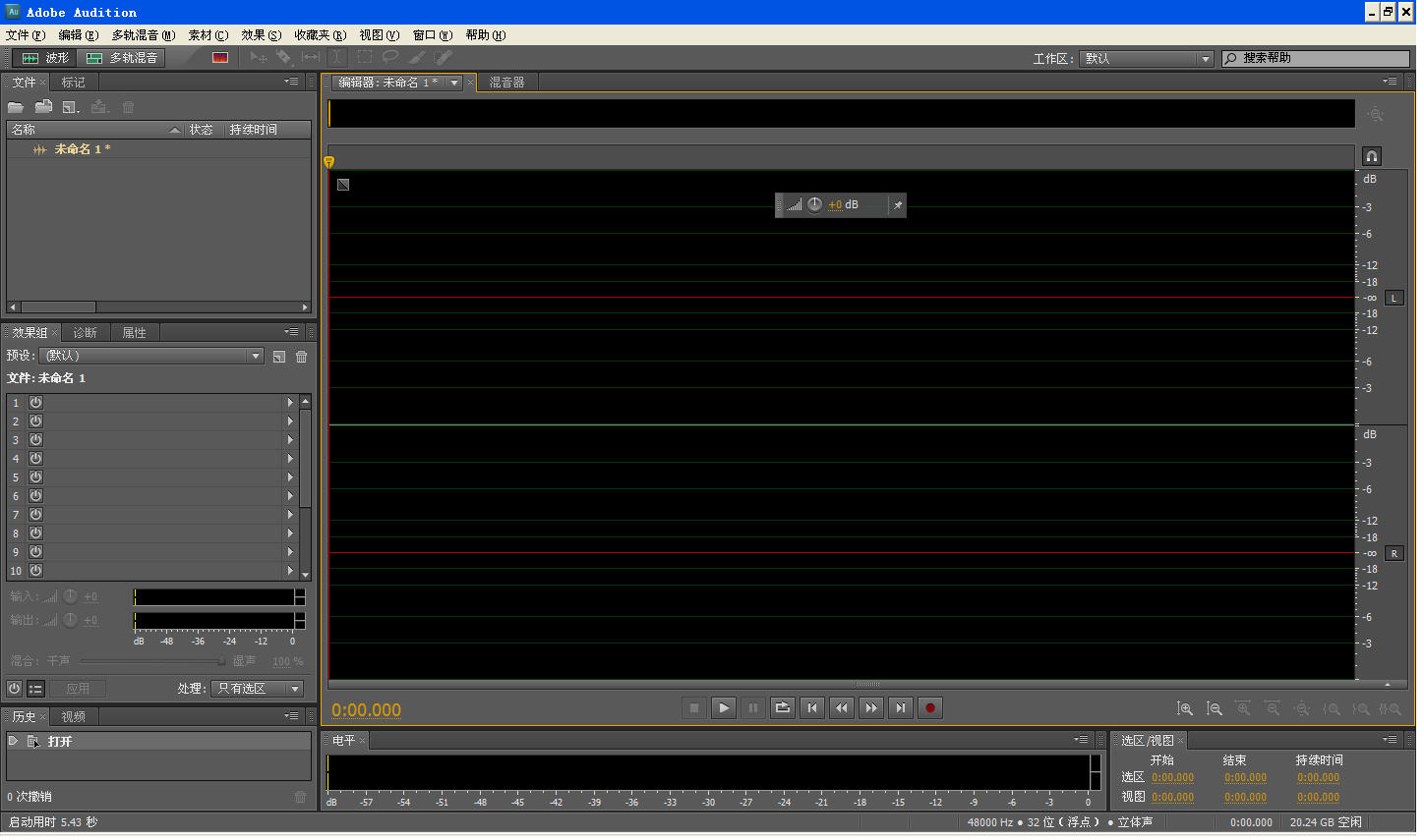 Adobe Audition1.5软件提供专业化音频编辑环境。Adobe Audition专门为音频和视频专业人员设计,可提供先进的音频混音、编辑和效果处理功能。Adobe Audition具有灵活的工作流程,使用非常简单并配有绝佳的工具,可以使制作出音质饱满、细致入微的最高品质音效。