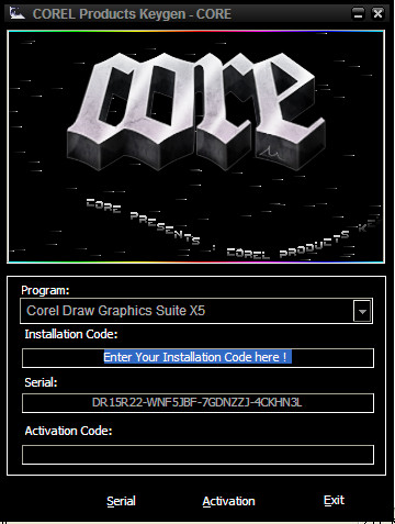 3、将下图中的“安装代码”五组共20位字母或数字包括“-”一起填入“会声会影 X5注册机”中的“Installation Code”项中,输入后点击“Activation”;