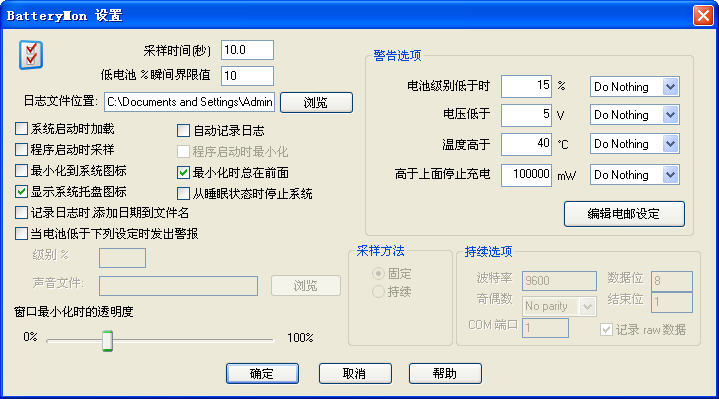 一个纯绿色的汉化电池校正软件,效果超好,有需要的朋友顶一下,本人的电脑电池只能用二十几分钟,用这个软件校验一遍后可以用一个半小时,绝不夸张,反复放电校验两次能用上二个小时。好高兴,现在把它发上来来大伙分享一下.PassMark BatteryMon是一款监视PC电池使用状况的软件,电池的各项参数都是由直观的图表即时表示的。支持便携式电脑和UPS